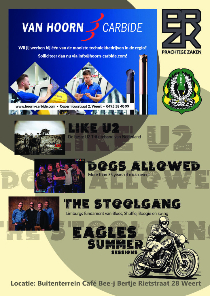 Naast LikeU2 hebben we nog een bekende band uit de regio Weert weten te strikken: The Stoolgang uit Stramproy. Deze band timmert al meer dan 30 jaar aan de weg in en buiten het weerterland .Zo waren ze eerder te zien op bijvoorbeeld: Moullin bleus , Bluesrock tegelen en All American Day in Weert. De jongens staan garant voor een spettende blues en boogie show !
